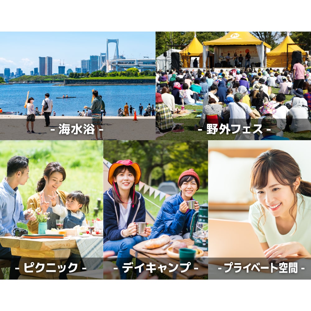 公園やデイキャンプ、海水浴、屋外フェスなどの虫よけ、日差し除けに、室内でのプライベート空間などにすぐに出して、すぐにしまえる「2秒で開くサンシェードテント」がおすすめだ。