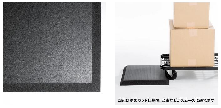 四辺の端は斜めにカットされているため、台車がスムーズに通ることができる。