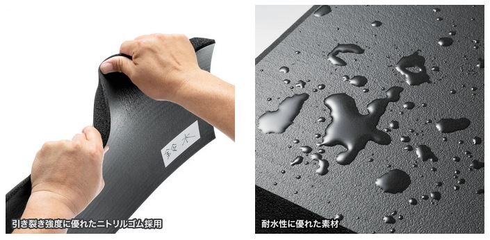 引き裂き強度があり、耐摩耗性の高いニトリルゴムを使用しているため、長期間の使用でも劣化しにくくなっている。耐水性と耐油性にも優れているので、さまざまな環境で使用できる。