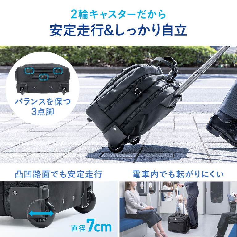■2輪キャスターで安定した走行としっかりした自立が可能な機動力を追求したビジネスキャリーバッグ「200-BAGCR008BK」