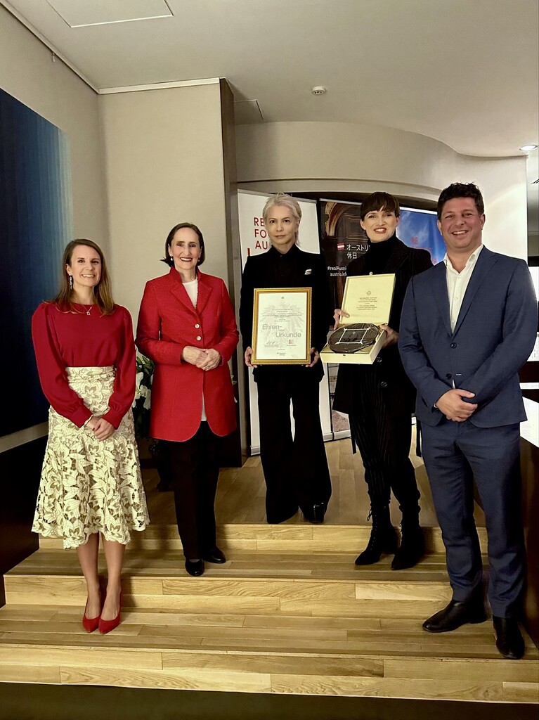 任命状を受け取ったHYDEさんは、「オーストリアにはまだ行ったことがないが、なるべく早く訪れて自ら魅力を発見し、日本の皆さんに広く伝えていきたい」と意気込みを述べた。
