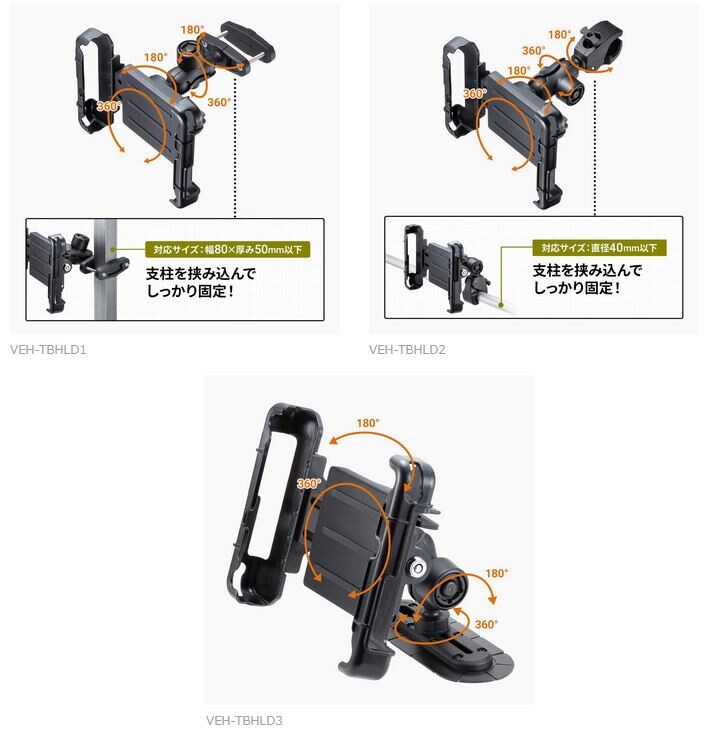 ■タブレットホルダー「VEH-TBHLD1(角柱取り付け)」