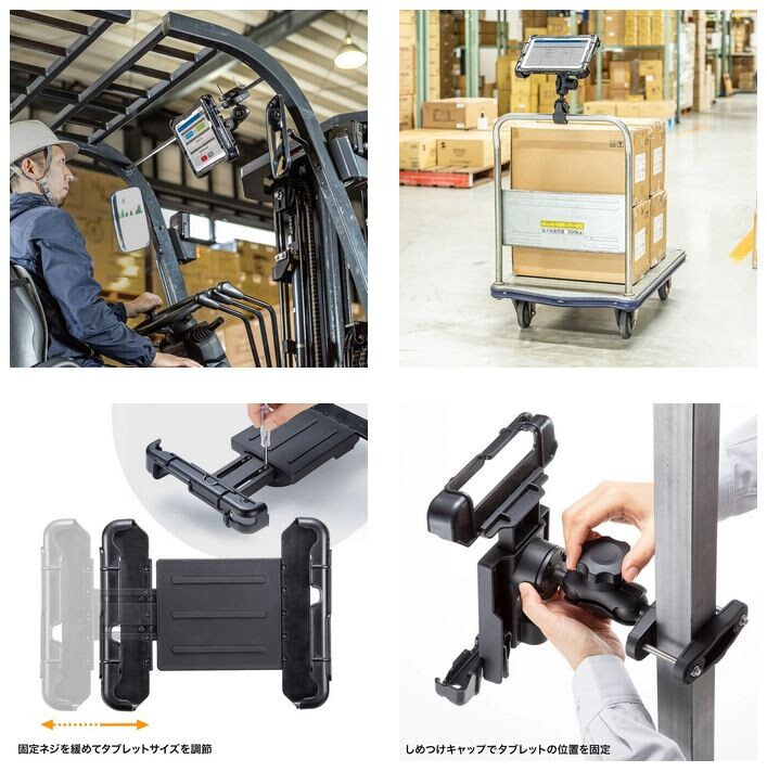 ■産業用タブレットをフォークリフトや台車などに固定できる