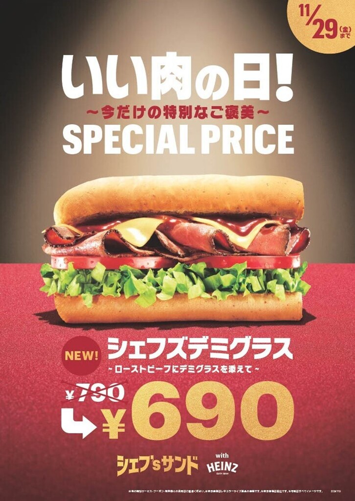 さらに、11月29日のいい肉の日に因み、2024年11月13日(水)~11月29日(金)の期間中、『シェフズデミグラス ~ローストビーフにデミグラスを添えて~』が通常790円のところ、100円引きの690円で楽しめるキャンペーンも実施する。