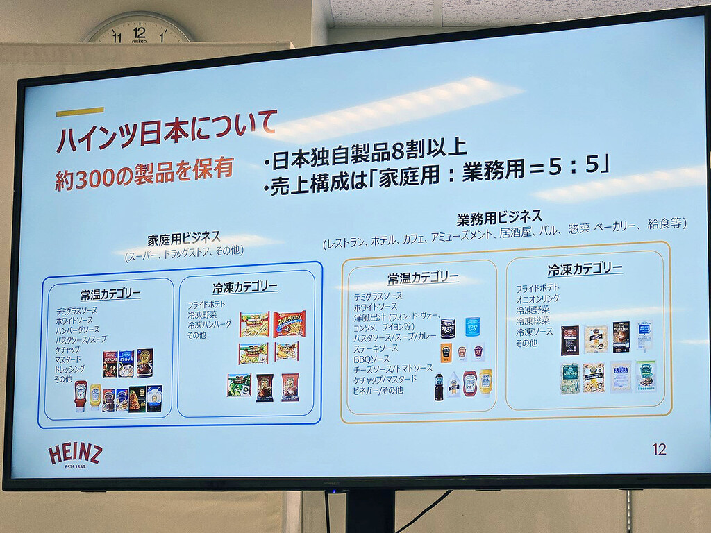 ハインツ日本株式会社は約300の製品を保有しており、そのうちの8割以上が日本独自の製品と、日本のオリジナルに注力している。