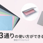 マウスパッドは、端にはステッチ処理を施しほつれ・破れを防止。さらに厚みを5mmにすることでクッション性を改良。手触りのよさとマウスを操作する手首の負担を大幅に軽減している。表面はクッション性に優れていながらも、低摩擦でスムーズなマウスコントロールを実現。さらに防水加工を施し、不慮の事故にも対応する。