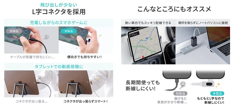 ■L字コネクタでスマートな使い心地