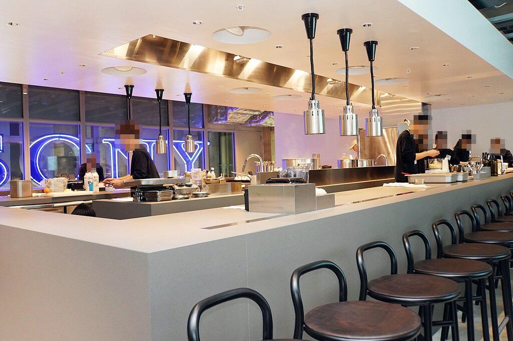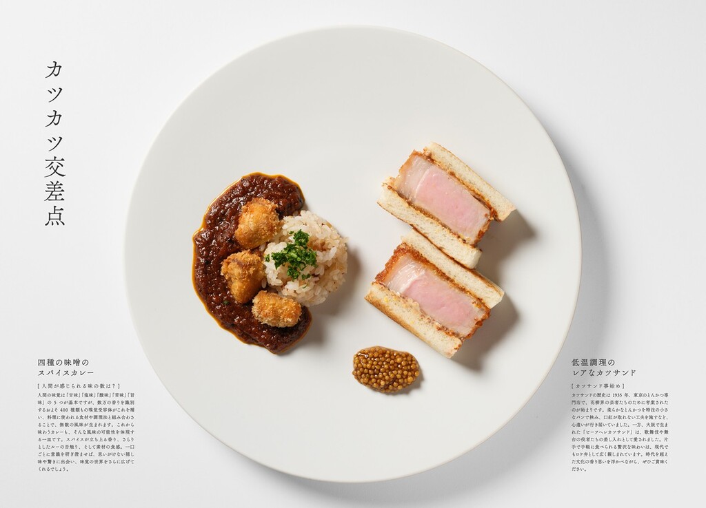 カジュアルダイニング「1/2 (Nibun no Ichi)」では、「ちょっと少ない、だから良い」とのコンセプトで、「Ginza Sony Parkらしさ」で創る、銀座を楽しむための『1/2 料理』を提供する。ここで提供される料理は、一人前の約1/4サイズの料理を2品盛り付けたプレートだ。洋食をベースにしたメニューは季節ごとに変わり、常時 約10種類のバリエーションを用意している。