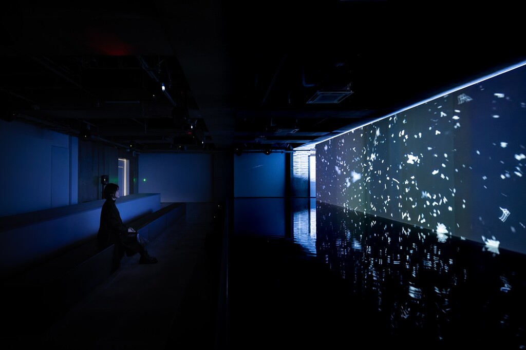 羊文学の言葉が浮かんでは解けていく儚くも美しい映像演出と、このプログラムのために特別に収録された塩塚モエカの声に導かれ、来場者は楽曲の世界観 へ引き込まれていく。羊文学の楽曲「more than words」「光るとき」が響き渡る空間で、様々な表情を見せる水面のゆらぎや、羊文学の音楽と言葉がたゆたう、文学的なプログラムを楽しめる。