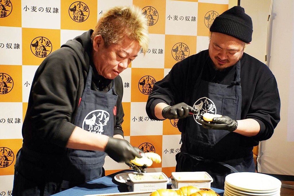株式会社こむぎのが展開する「小麦の奴隷」は、ホリエモンこと堀江貴文氏が主宰するオンラインサロンHIU(堀江貴文イノベーション大学校)から生まれた「地方活性型エンタメパン屋」だ。同社は、ミシュランガイド東京2020から6年連続で掲載されている「sio」のオーナーシェフ・鳥羽周作氏とタッグを組み、コラボパンを開発した。発売に先立ち、2月5日(水)、【堀江貴文×鳥羽周作 特別プロジェクト第一弾】発表記者会見が実施された。