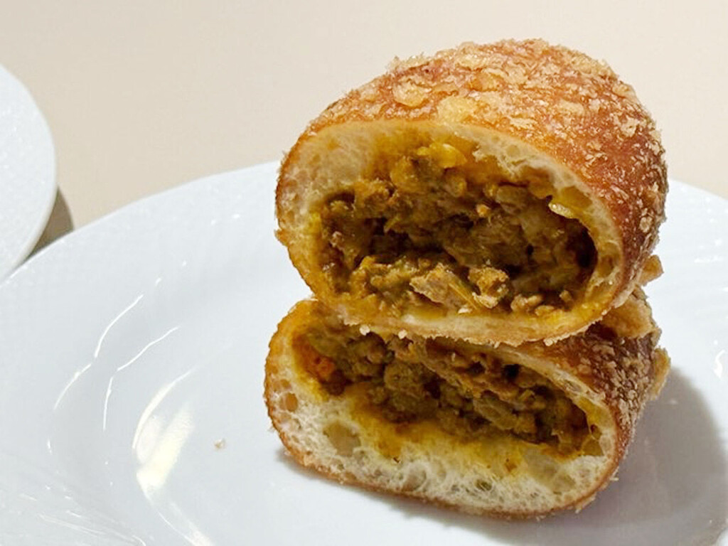 「トバいキーマカレーパン」はひき肉の食感をしっかり残しつつ、カレーパンの生地と調和する特製キーマカレーをぎっしり包み込んだ。カレーのコクとスパイスが織りなす至福の味わいとなっている。