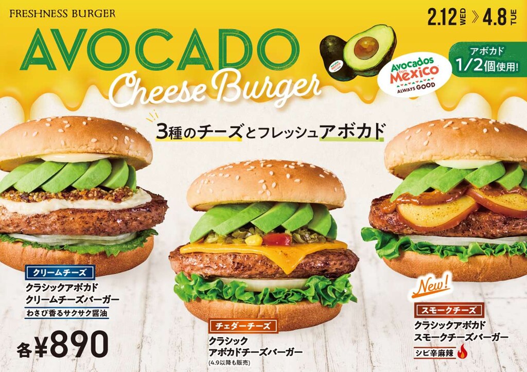 コロワイドグループの株式会社フレッシュネスは、2025年2月12日(水)より、ハンバーガーチェーン「フレッシュネスバーガー」にて、アボカドを使った新商品「クラシックアボカドスモークチーズバーガー~シビ辛麻辣~」を発売する。既存商品である人気の「クラシックアボカドクリームチーズバーガー~わさび香るサクサク醤油~」、王道の「クラシックアボカドチーズバーガー」と、それぞれ異なるチーズとメキシコ産アボカドの絶妙な組み合わせを楽しめる。※本キャンペーンは、Avocados From Mexicoとのコラボレーション