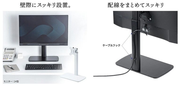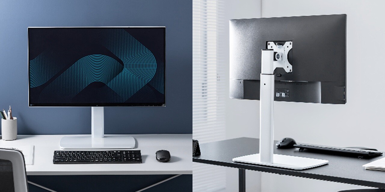 ■誰でも簡単に設置が可能なモニタースタンドの新色「100-LAD002W(ホワイト)」