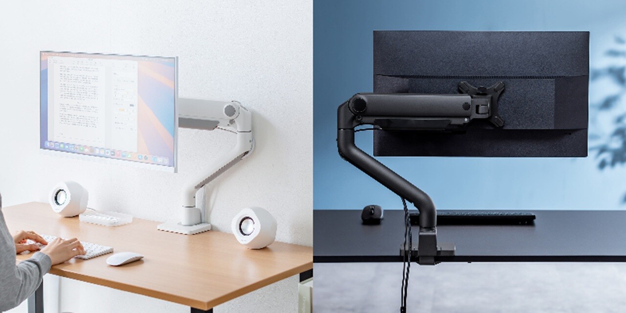 サンワサプライ株式会社が運営している直販サイト『サンワダイレクト』は、誰でも簡単に取り付けできる薄型クランプモニターアーム「100-LAC008BK(ブラック)」と「100-LAC008W(ホワイト)」を発売した。
