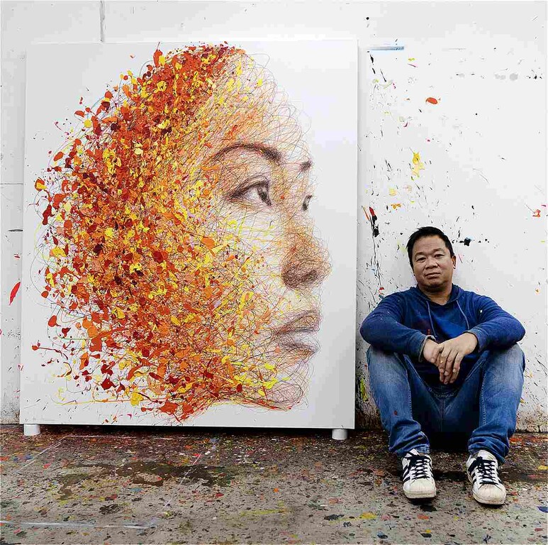 1972年パリ生まれ。本能的なスタイルを持つ独学アーティスト。香港のStep Creation Gallery所属。型にはまらない性格と同様に、彼の作品は、まさに型にはまらない。木炭、ガッシュ、フェルトチップ、油彩、さらにはペンなど多彩な画材を用いる彼のキャンバスは、まるで戦いのようであり、素材と手との対話であり出会いである。色彩の選択、素材の使い方、ジェスチャーの生き生きとした動きは、常に外見を超えた“人間像”を世界に示すことを目的としている。彼の繊細な表現は、”見えないもの”と”見えるもの”、”物質的なもの”と”非物質的なもの”の二面性を探求する。この意味において、ホム・グエン氏の作品は、私たち一人ひとりに、“自分自身を見せるもの”“隠そうとするもの”、そして「本当の自分自身について」内省するよう促している。