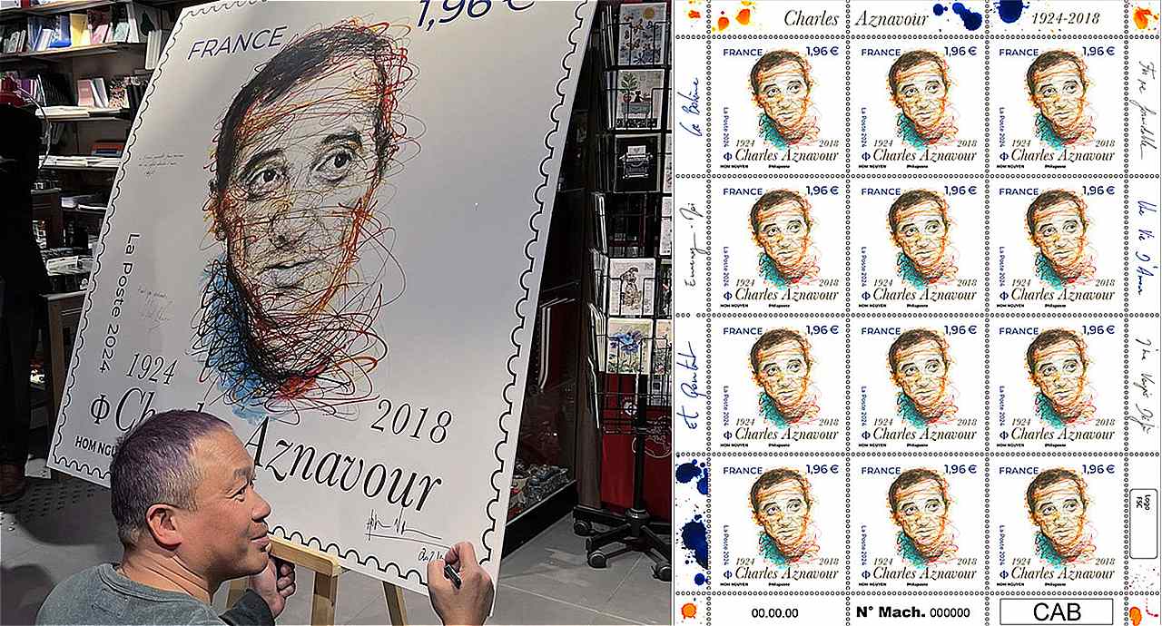 2024年、シャルル・アズナブール生誕100周年記念、フランス郵便局のコレクターズ切手を制作。