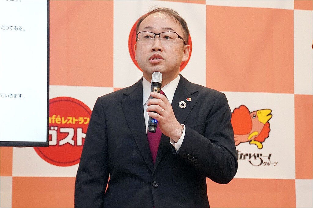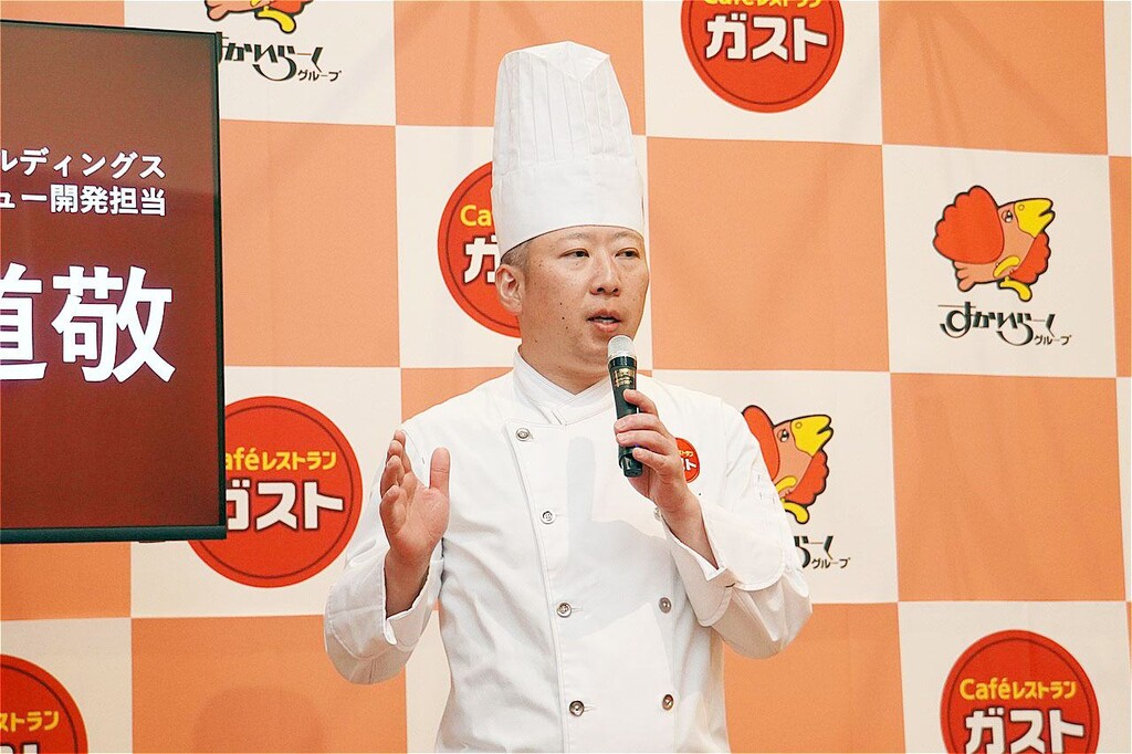 発表会は、すかいらーくホールディングス ガスト開発グループ ディレクター 六笠雅之氏の挨拶から始まった。