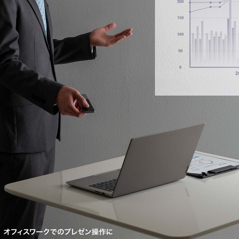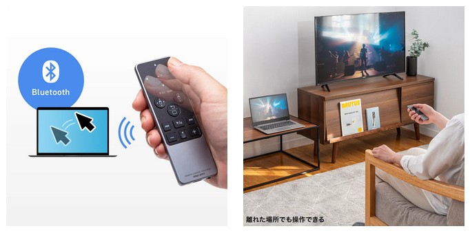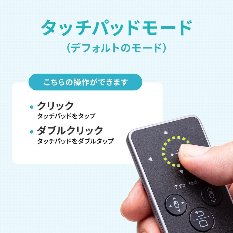 タッチパッドを搭載し、離れたところからパソコンを空中操作できる。