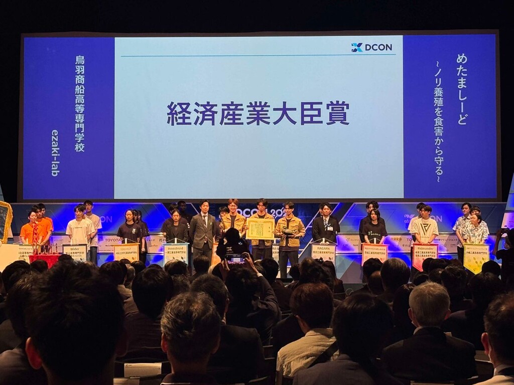令和7年5月9日~10日、渋谷ヒカリエホールにおいて行われた第6回高等専門学校ディープラーニングコンテスト2025(以下、「DCON2025」)本選において、鳥羽商船高等専門学校(三重県鳥羽市、校長:古山 雄一、以下「鳥羽商船高専」)情報機械システム工学科に所属する学生チームezaki-labが経済産業大臣賞および企業賞(アクセスネット賞・三菱電機エンジニアリング賞・ビズリーチ賞)を受賞した。