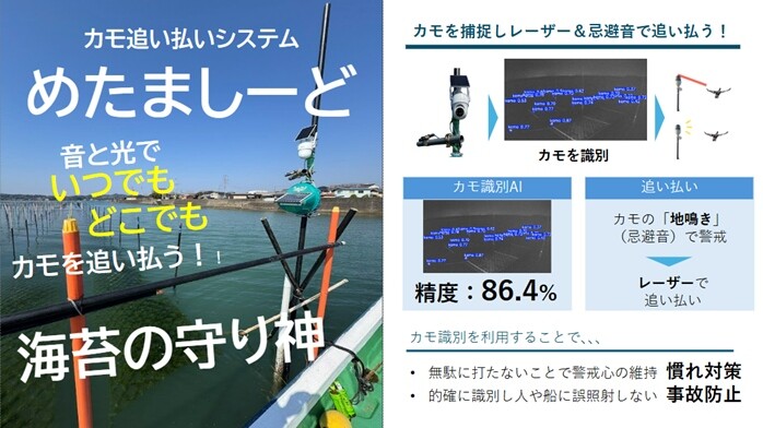 ■「めたましーど」海苔養殖を食害から守る、カモ追い払いシステム