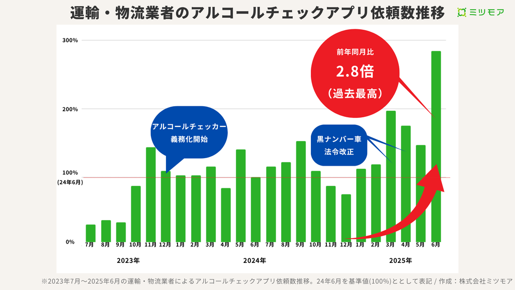 アルコールチェッカー義務化時を上回る需要ーー25年6月には前年同月比2.8倍の過去最高の依頼数に