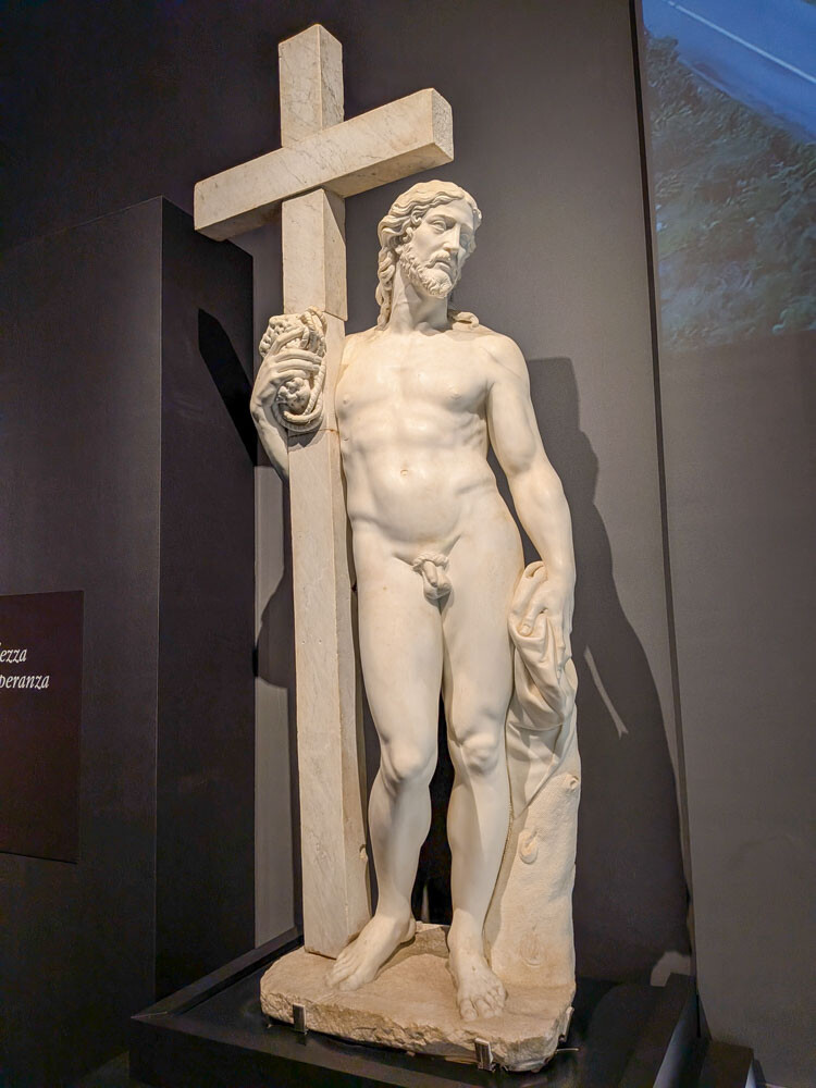 一つは、未来派の代表的彫刻家ウンベルト・ボッチョーニの作品《空間における連続性の唯一の形態》。人の動きを彫刻で連続的にとらえたこの作品は、イタリアの近代芸術が持つ革新性とスピード感を体感させる。一見木で作られているように見えるがブロンズ製。