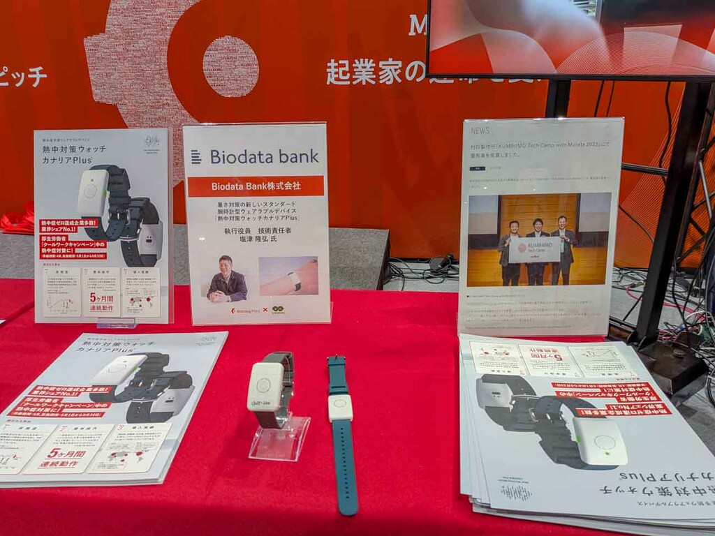 Biodata Bankは、「熱中対策ウォッチ カナリアPlus」を通じて、高温多湿な日本の夏における安全対策の重要性を訴求。とくに建設現場をはじめ、屋外作業を中心とした多様な産業分野から注目を集めていた。