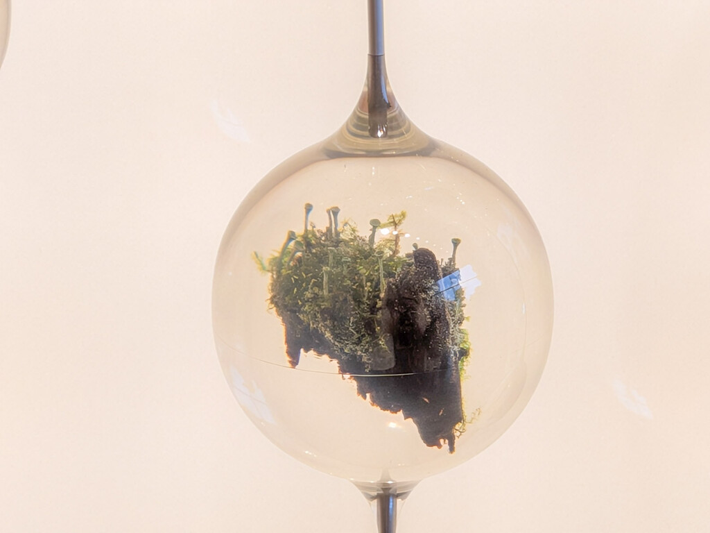 ポーランドの植物を透明な球体に封入したインスタレーション。自然が持つ一瞬の美しさをそのままアートとして保存し、観る者に“静けさの中の生命”を想起させる。