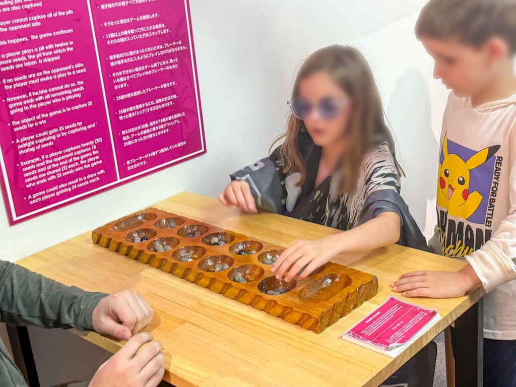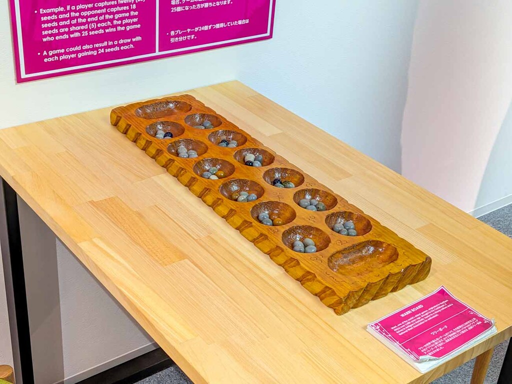 来場者は、カリブ地域で親しまれている伝統的なボードゲーム「ワリー(Warri)」の遊び方を体験できた。シンプルながら奥深いルールで、来場者同士が夢中になって対戦する姿も見られた。