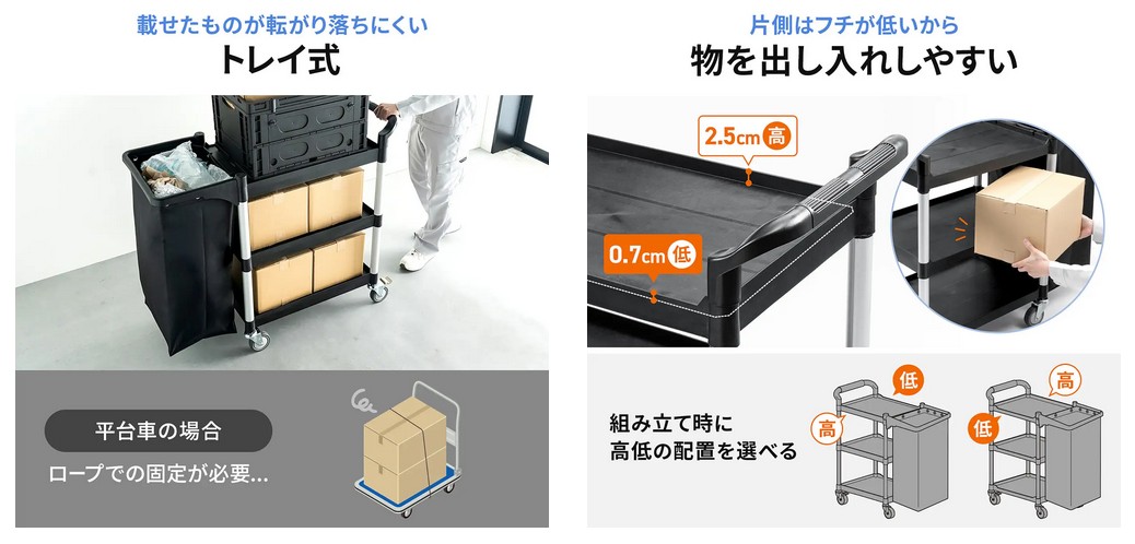 ■載せたものが転がり落ちにくいトレイ式