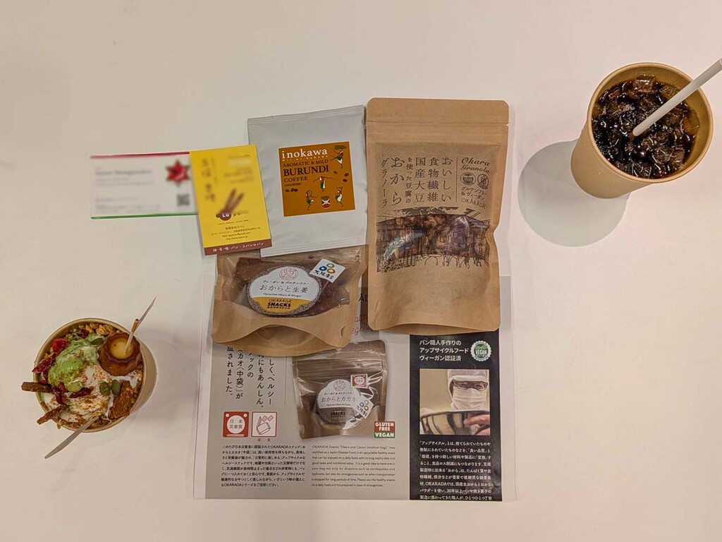 一方、カヌレパフェは、ブルンジ産のオーガニック蜂蜜と、日本のおから由来のヘルシー素材を贅沢に組み合わせたスイーツである。グルテンフリーのおからカヌレをはじめ、サクサクとしたOKARADAスナックや、栄養豊富なおからグラノーラがトッピングされており、まさに“食べるサステナビリティ”を体現するデザートとなっている。