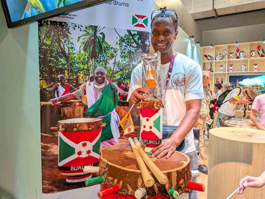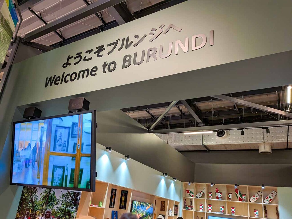 ブルンジ共和国パビリオンでは、コーヒーやスイーツだけでなく、豊かな文化や手仕事の魅力を体感できる展示も、来場者の関心を集めている。