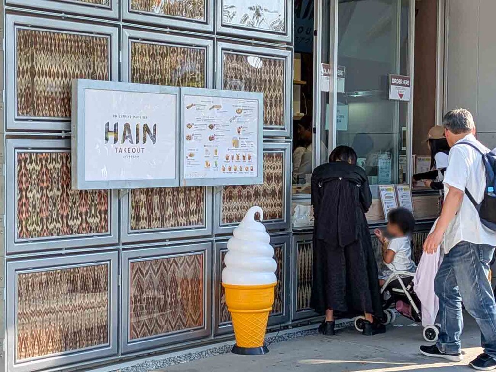 販売はフィリピン館の出口付近にある「HAIN TAKE OUT」で行われており、館内を見学しなくても購入ができる。パビリオンの営業時間中(朝〜21:30頃まで)を目安に提供されており、タイミングによっては夜間でも購入でき、涼を求める“ひと休みタイム”にもぴったりだ。