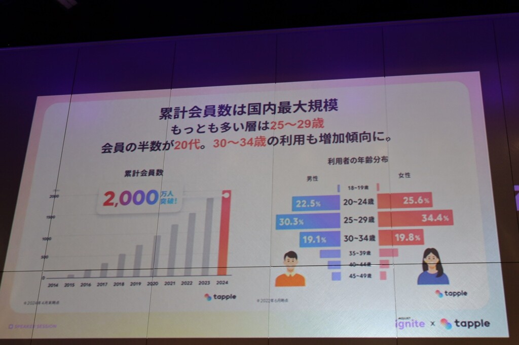 20代に人気のマッチングアプリ「タップル」を開発する株式会社タップル代表取締役社長の平松 繁和氏は「何度も新規事業を立ち上げてきたが、大切なのは自分たちでどうこうするより、時流を読み、適切なポジショニングをすること」だと語る。「タップル」は他のマッチングサービスに先駆けて、アプリに特化したサービスとして展開し、スワイプ型というスマホ独自のUXを強みとした。また、他社のサービスが実名のFacebookアカウントとの連携が必須だったのに対し、それをせずとも利用可能にすることで、多くのユーザーに間口を開放。これによりライトなユーザー層を取り込んだ。