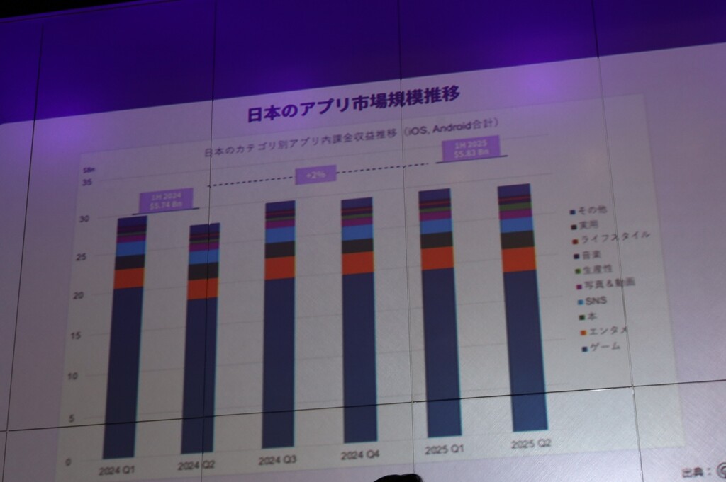 その伸びを牽引しているのが、ショートドラマなどのエンタメ系アプリだ。新規ダウンロード数で見ると、2024年上半期から2025年上半期にかけて、エンタメジャンルは、非ゲームアプリのなかでは唯一の二桁成長を遂げている。また売上面でも、エンタメは伸びを見せている。2020年のアプリ内課金売上はゲームが8割を占めていたが、2024年では7割となっており、非ゲームが成長を遂げている。その筆頭がエンタメ系アプリなのだ。大城氏は「ショートドラマなどに人気が集まるのは、20代・30代のユーザーにタイパを意識する傾向があるからではないか」と語る。なおエンタメのほかにも、漫画、SNSといったジャンルのアプリも収益を伸ばしている。