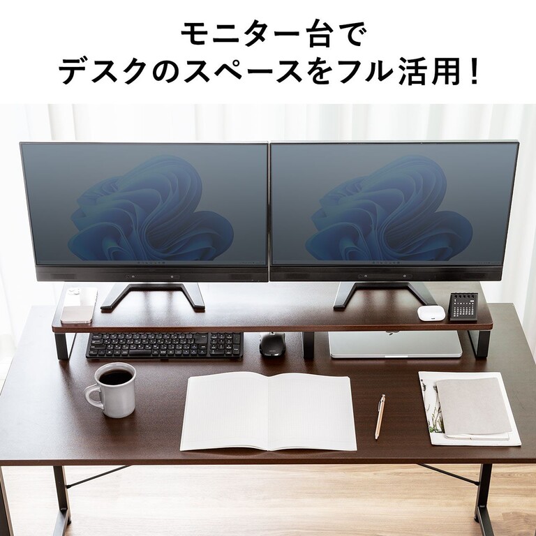 本製品は、キーボードやマウスを収納してデスク上を有効活用できるモニター台。