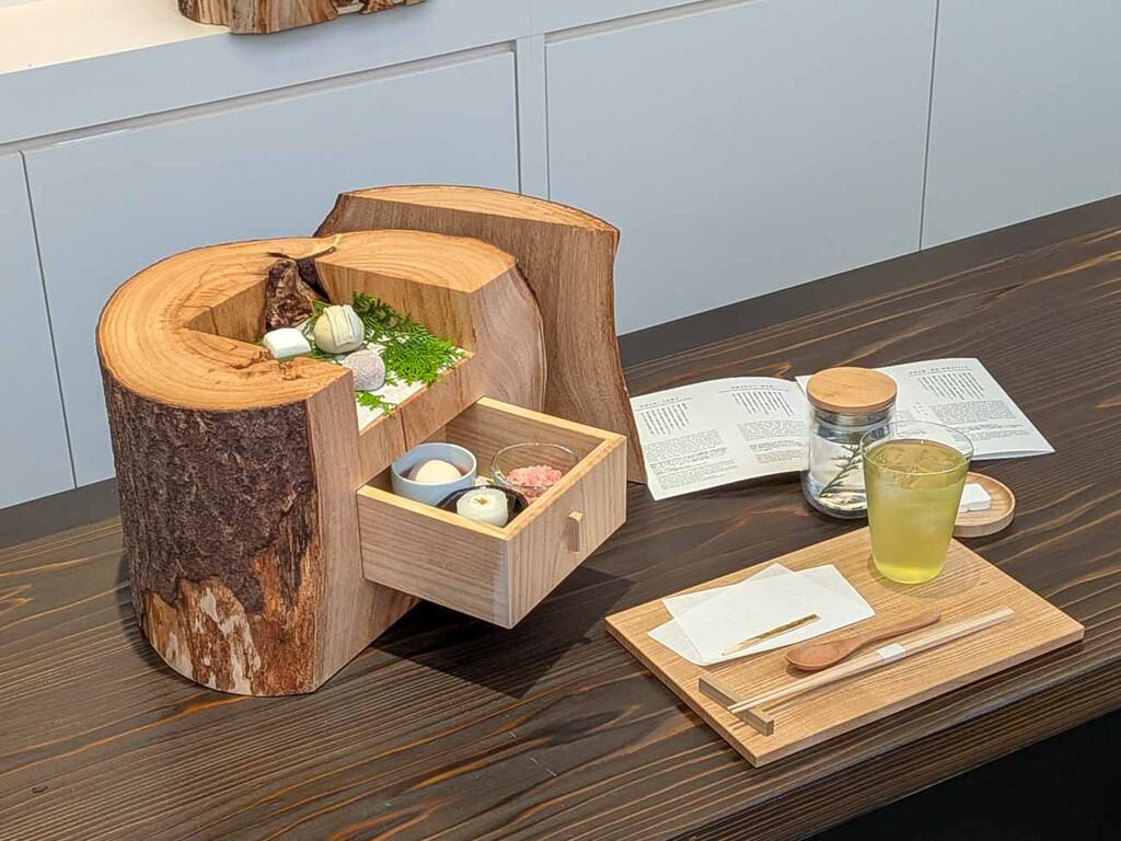 関西パビリオンの和歌山ブースでは、「森を食す」という特別な体験を通じて、訪れた人々が和歌山の自然と文化を全身で感じられるプログラムを展開している。まるでアート作品のような和菓子とドリンクのペアリングは、五感に深く訴えかける圧巻の一皿である。日本文化の粋と職人技が凝縮されたこの体験は、万博内でも際立つ唯一無二のひとときとなっている。