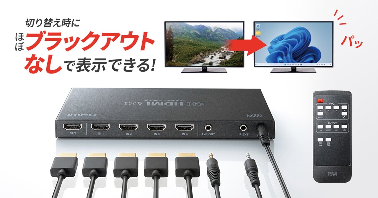 映像が途切れない、シームレス表示に対応!4入力1出力のHDMI切替器