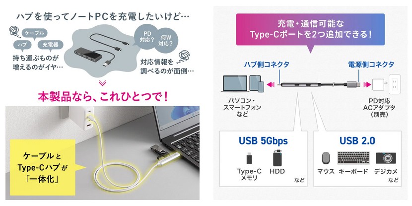 - TypeCポートを2個増設可能!USB Type-Cケーブルの0.5m/1.5m はコメントを受け付けていません