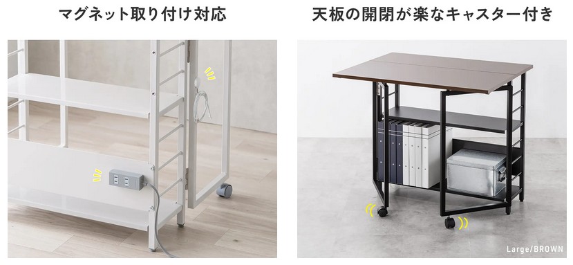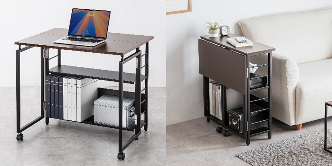 サンワサプライ株式会社が運営している直販サイト『サンワダイレクト』は、3ステップで簡単に天板拡張でき、デスクとしても収納棚としても使用できる折りたたみデスク、「100-DESKH082(横幅65cm)」と「100-DESKH083(横幅80cm)」を発売した。