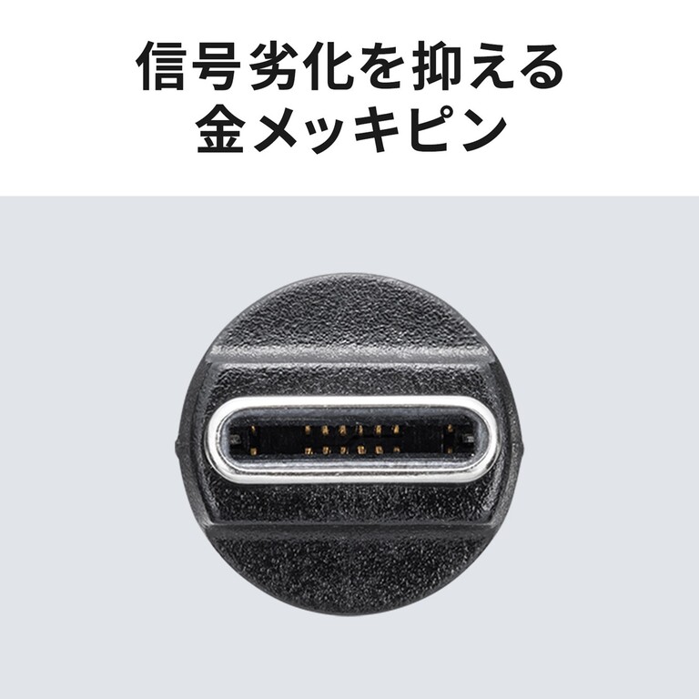 コネクタ部分には金メッキピンを採用し、経年劣化や錆びに強く、安定した信号品質を保つ。