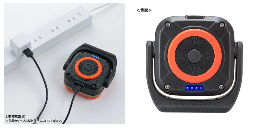 付属のType-Cケーブルで充電できるので、倉庫、駐車場、現場作業、アウトドアなど、電源のない場所でも使用できる。充電残量が分かるインジケーター付きで、急な電池切れの心配がない。