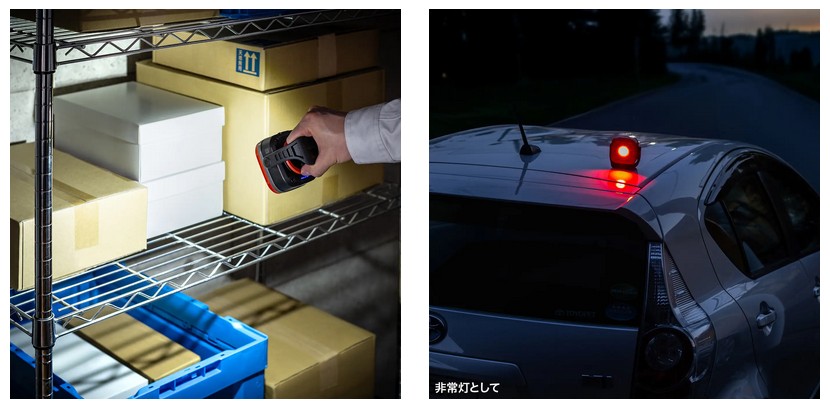 マグネット設置以外にも、スタンド設置、カラビナ取り付け、三脚設置に対応している。手持ちライトとしても使用する。
