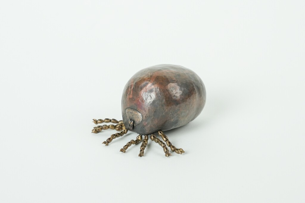 私は昆虫が苦手な為、制作している作品のモチーフは昆虫から避けてきました。今回の害蟲展に応募することで改めて苦手な生き物と向き合おうと思い、特に私の中で一番気持ちが悪いと感じたマダニの吸⾎後の姿を選びました。制作する中で次第にマダニが⾎を吸った後の張りのある人の皮膚の様な表面に魅⼒を感じました。この作品を通して鑑賞者がマダニと言う生き物を見た目からでも知っていただければと思います。
