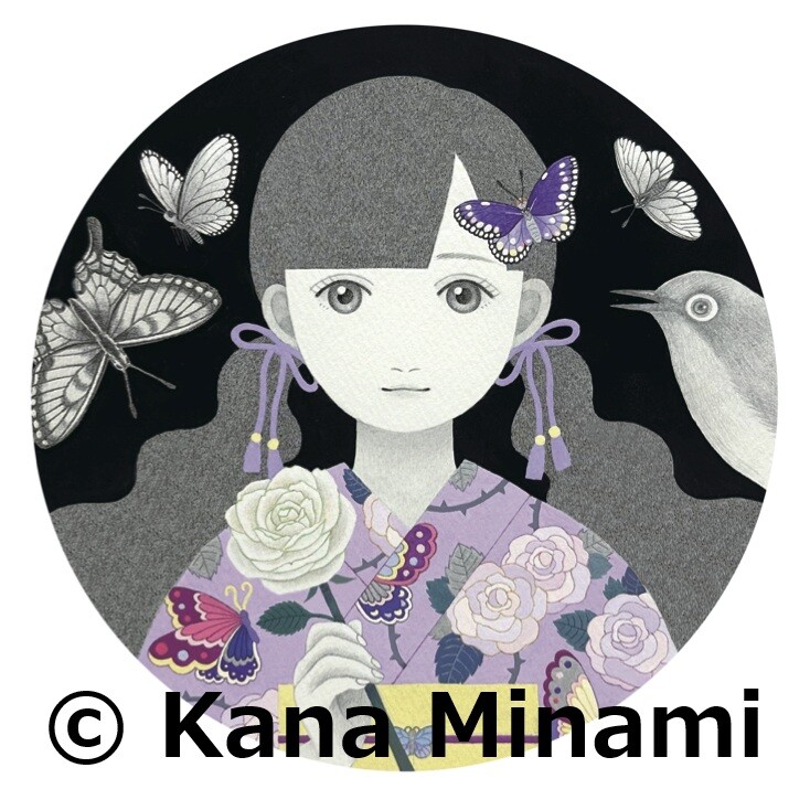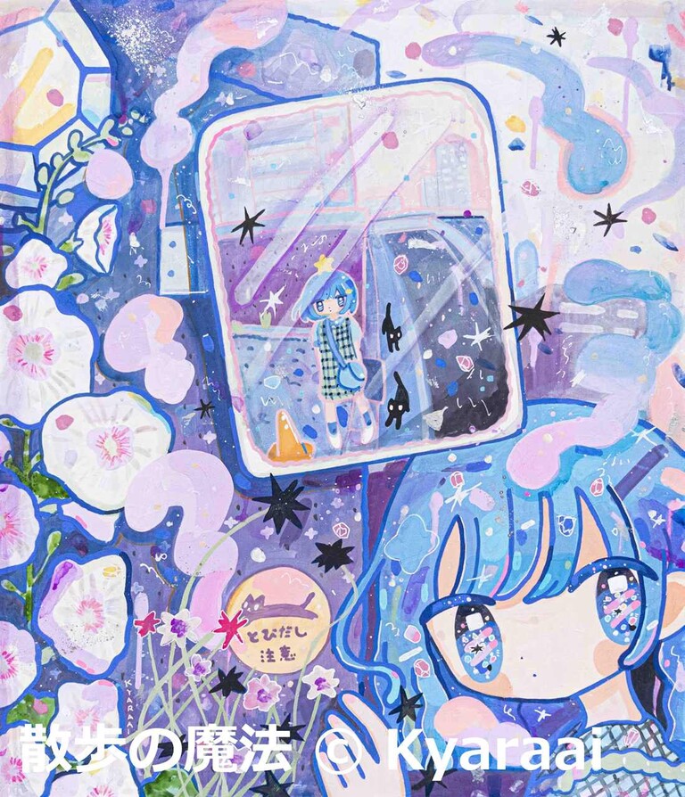 「ゆらぎの中にいる自覚」が制作の主なテーマ。SNSで多様な価値観に触れられる時代、様々なものを吸収して、何が正しいのか、自分の意見や属性すらも分からなくなる浮遊感が自身の中に根強くあり、作品制作はそれを受け止める器にもなる。幼い頃に親しんだ少女漫画のような大きな瞳や、ファンシー雑貨のような色彩など、独自のキャッチーさで鑑賞者を引き込み、描かれた人物と対話ができるような作品づくりを続けている。
