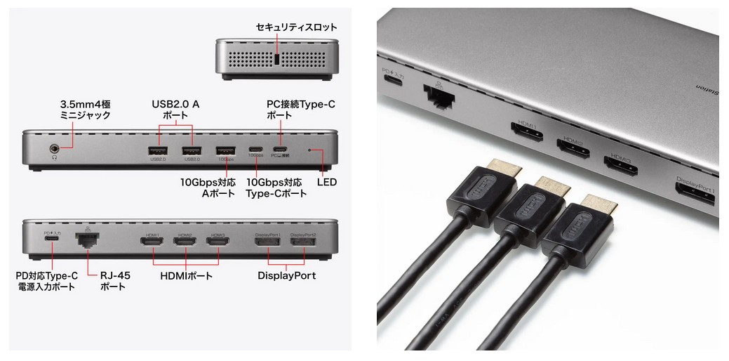 ■ドッキングステーション(HDMI/DisplayPort×4K×3画面出力対応)「USB-CVDK20」