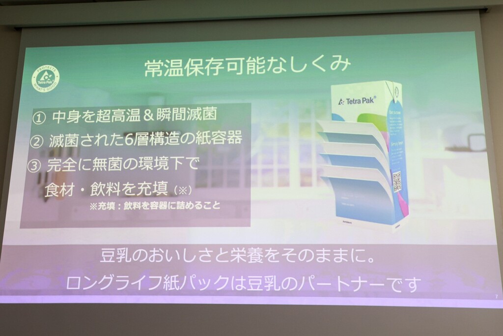 また、「リセッ豆乳プロジェクト」について「日本国内においても、タンパク質への関心が非常に高くなってきています。ただ、実際には、消費者が摂取するタンパク質の量はまだまだ足りていないという現状もある上、動物性タンパク質と植物性タンパク質のバランスもしっかり取れていないという指摘もあります。そのため、日本でテトラパックが進めているこの『リセッ豆乳プロジェクト』においては、良質な植物性タンパクを豊富に含む豆乳をぜひ食生活の中に手軽に取り込んでいただき、バランスよく動物性タンパクと植物性タンパクを摂っていただいて健康になろうと、それをサポートするようなプロジェクトになっています」と説明し、豆乳を食生活に取り入れ、動物性と植物性たんぱく質のバランスを取ることの重要性を説いた。