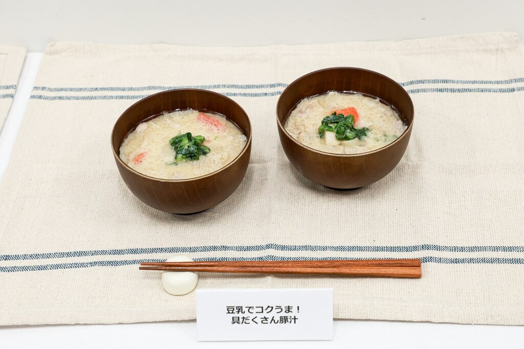 さらに、当日は豪華ゲストとして、豆乳マニアの黒豆田聖子さんが登壇し豆乳に魅了された理由や日々の生活の中で上手く豆乳を摂り入れている理由について熱く語ったほか、管理栄養士・豆乳マイスタープロの藤橋ひとみさんからは、簡単に作れるたんぱく質の動植物バランスを考慮した“リセッ豆乳”メニューが紹介された。