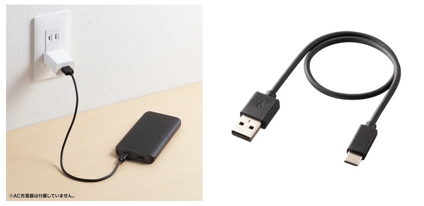 スマートフォンやタブレットへ充電ができる。持ち運びしやすい薄型形状だ。