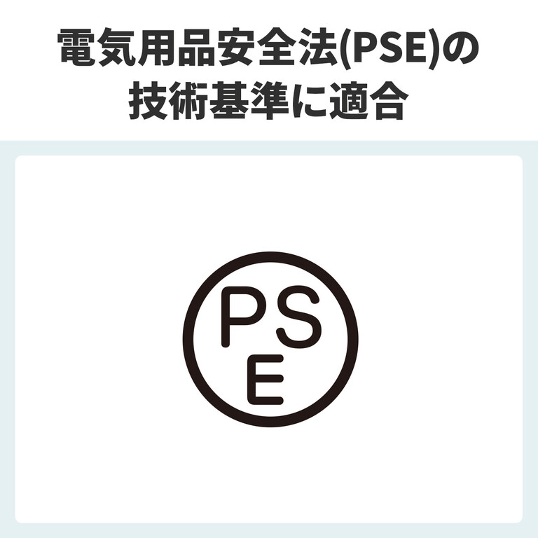 本製品は電気用品安全法(PSE)の技術基準に適合した、安全性の高い製品だ。